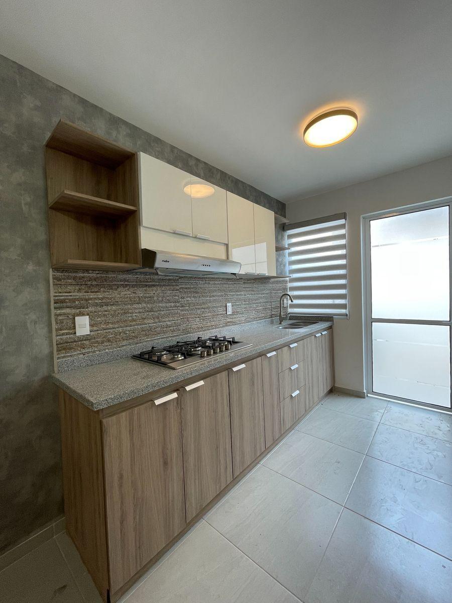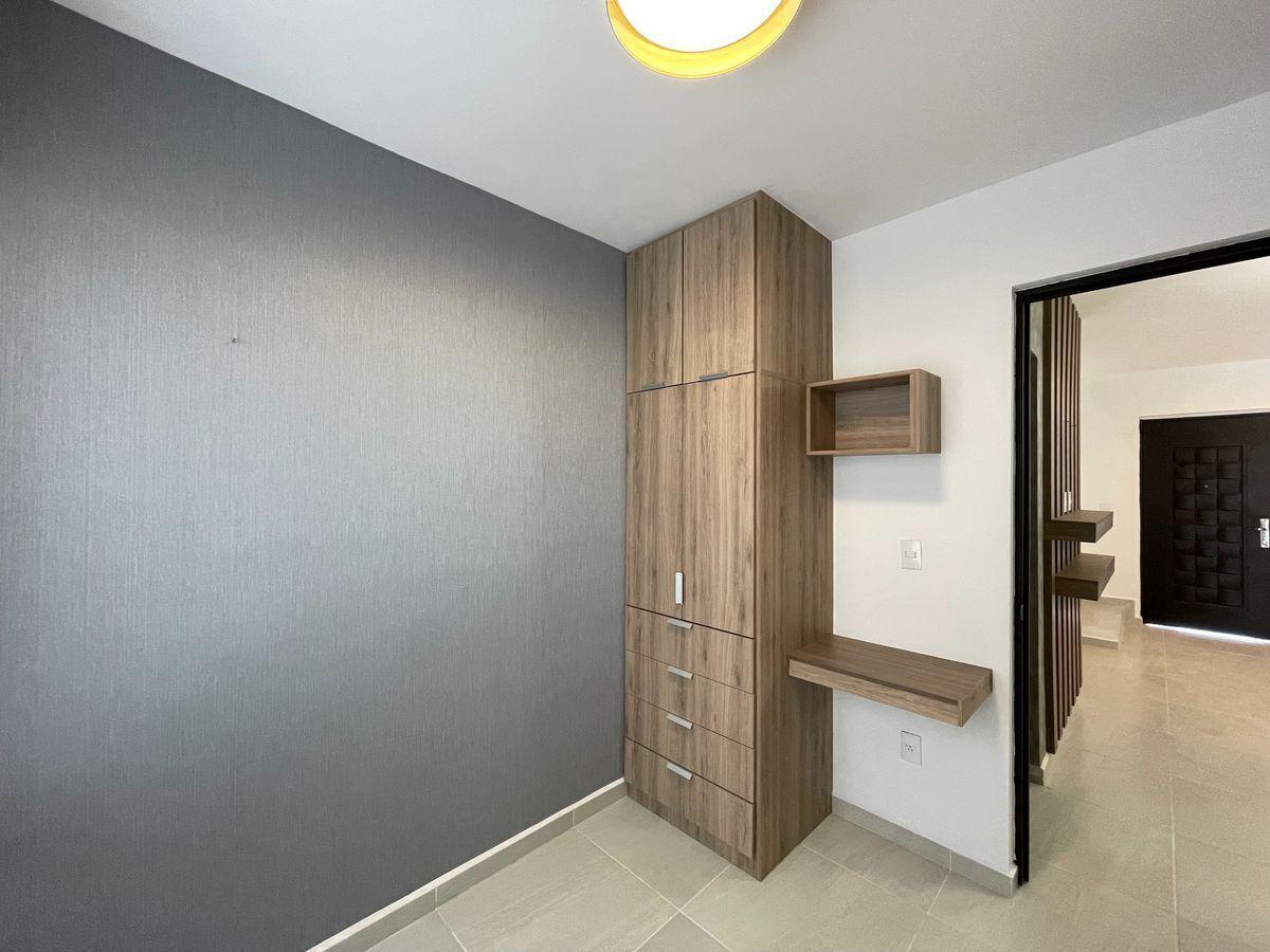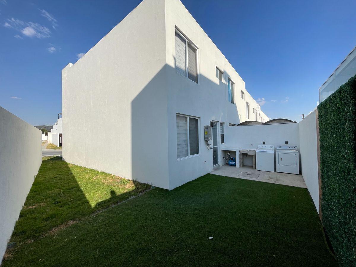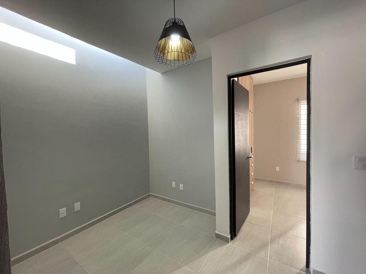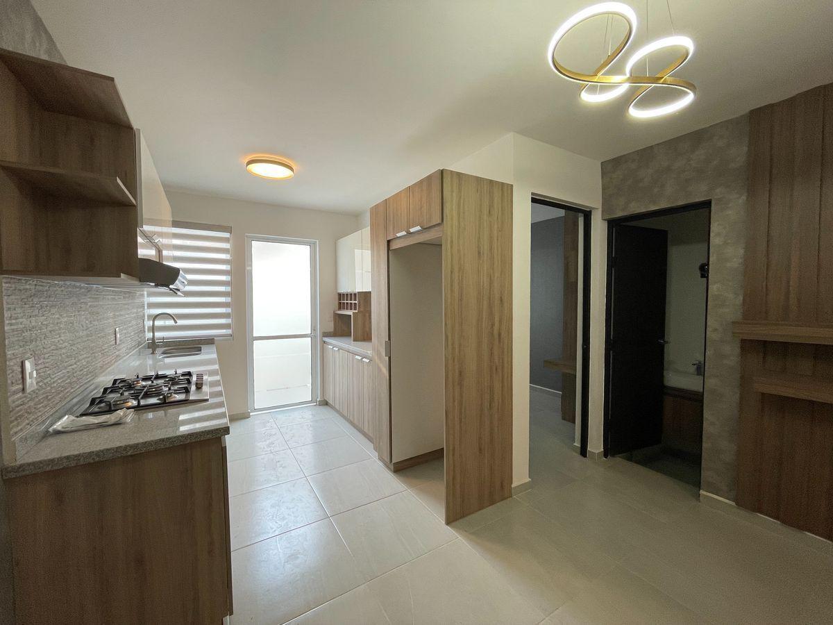 Amplia sala y comedor, cocina integral en bitono, cuarto de estudio con mueble, baño completo para servicio del área social, patio de lavado y jardín con salida hacia la parte frontal de la casa.