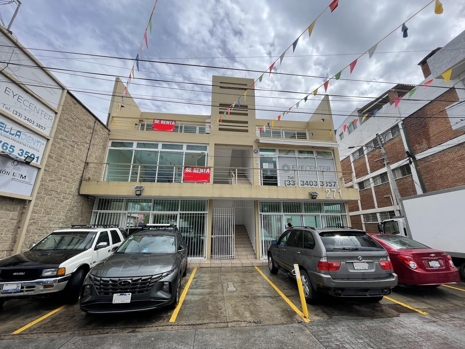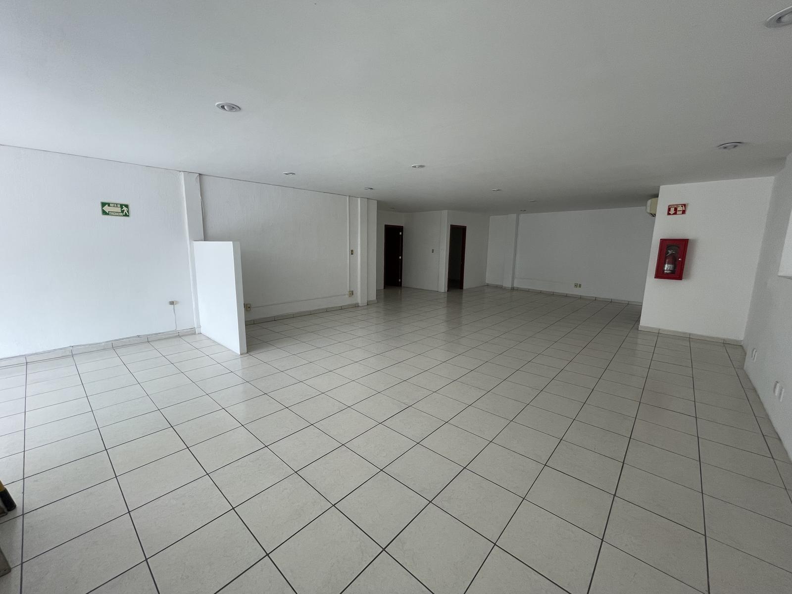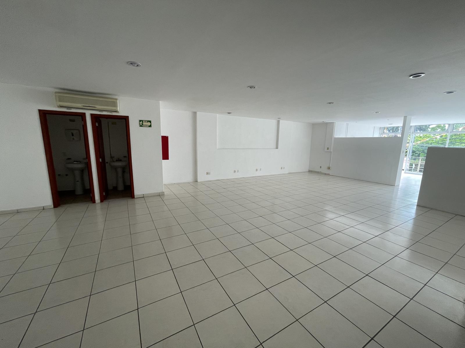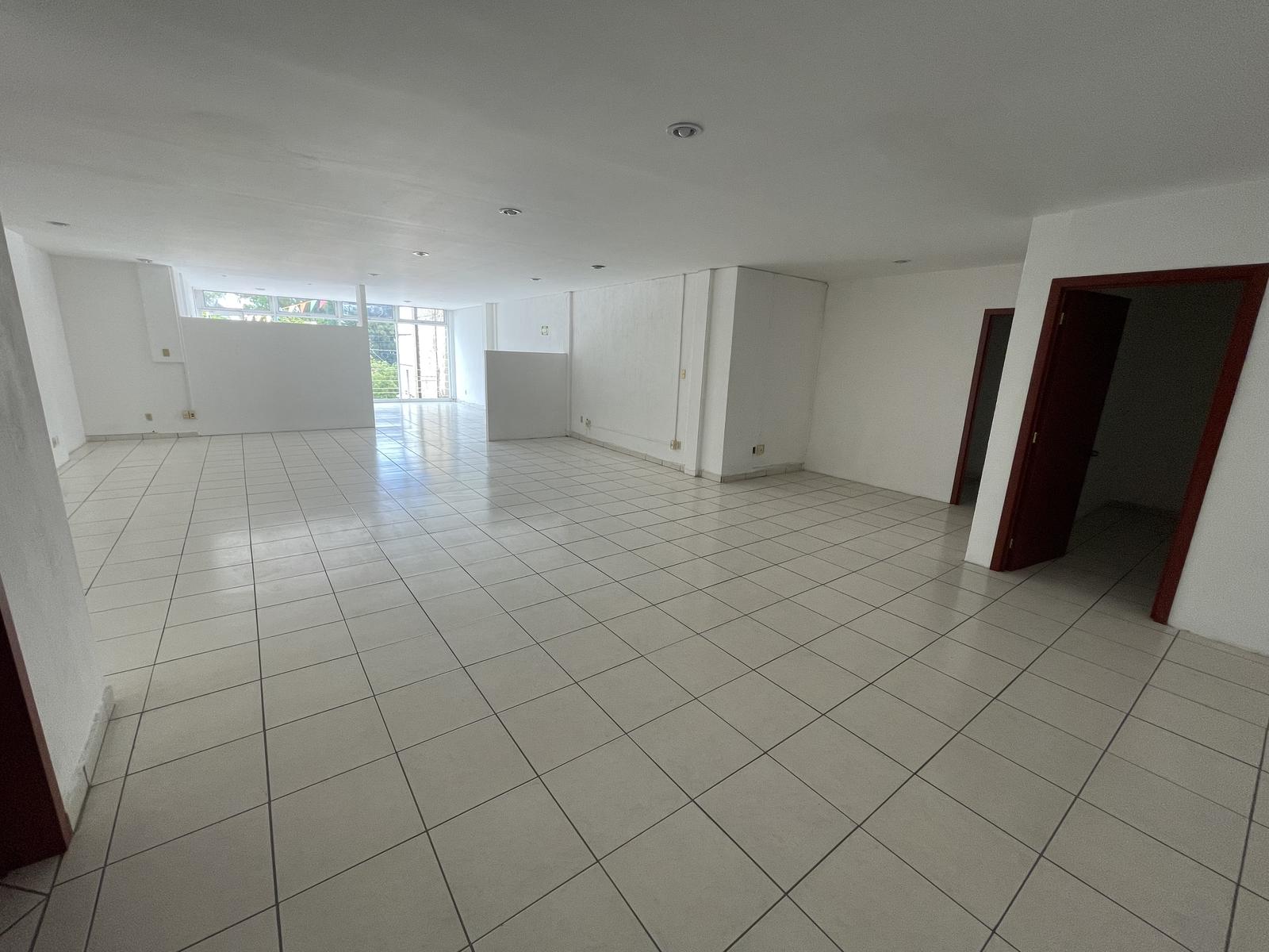 El edificio es de 3 niveles, en el cual esta oficina se encuentra en el 2do nivel. Cuenta con 128 metros cuadrados de espacio, un privado, dos medios baños y un pequeño espacio que puede ser usado para Site o bodega.